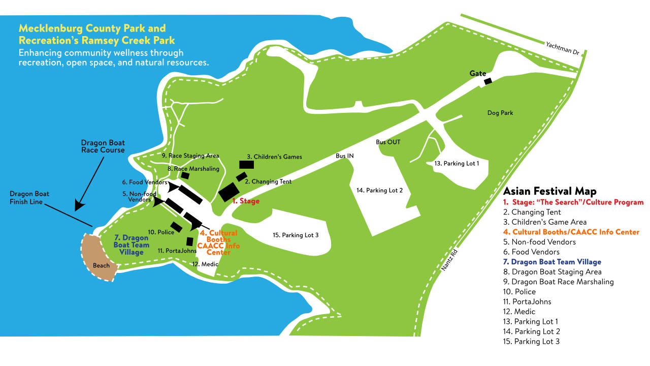 Please note that there is no public parking for the Asian Festival at Ramsey Creek Park.